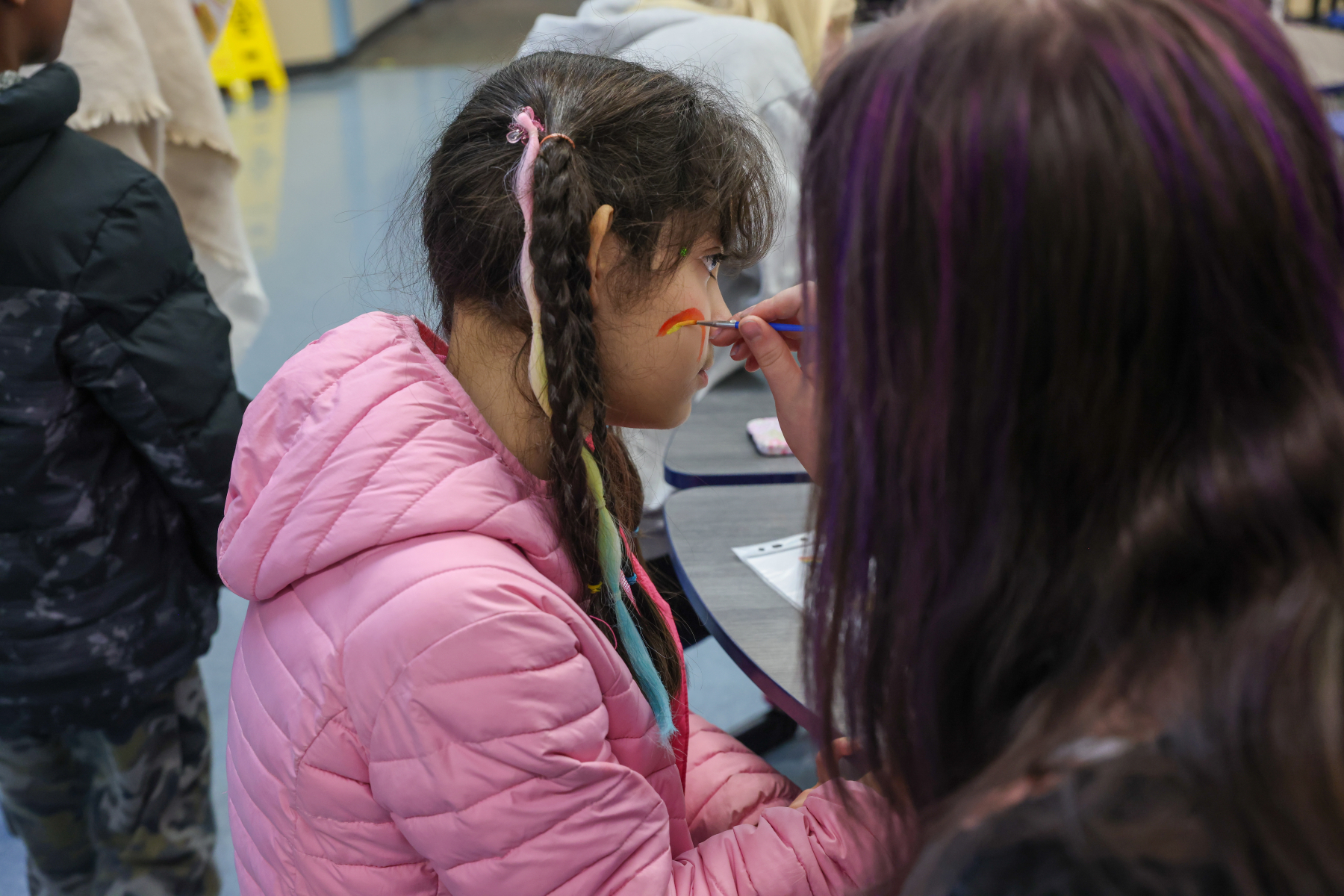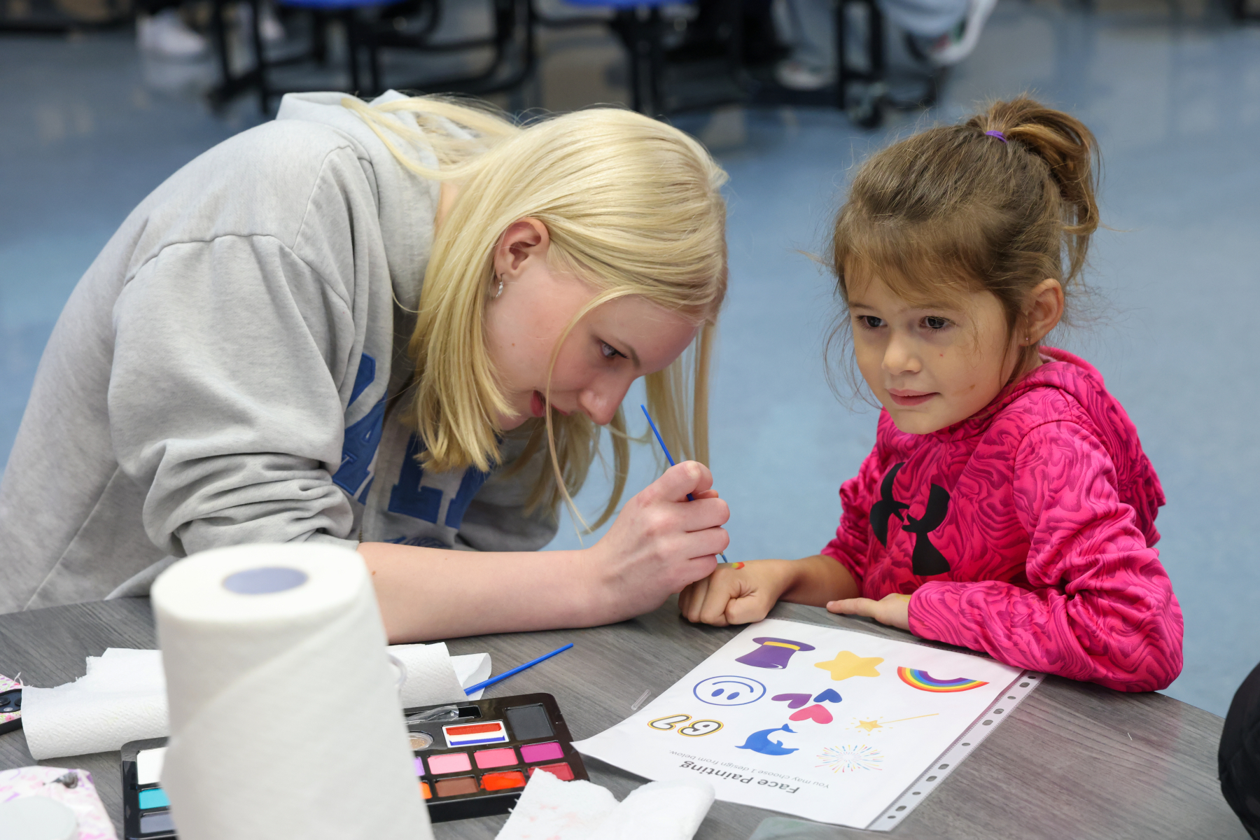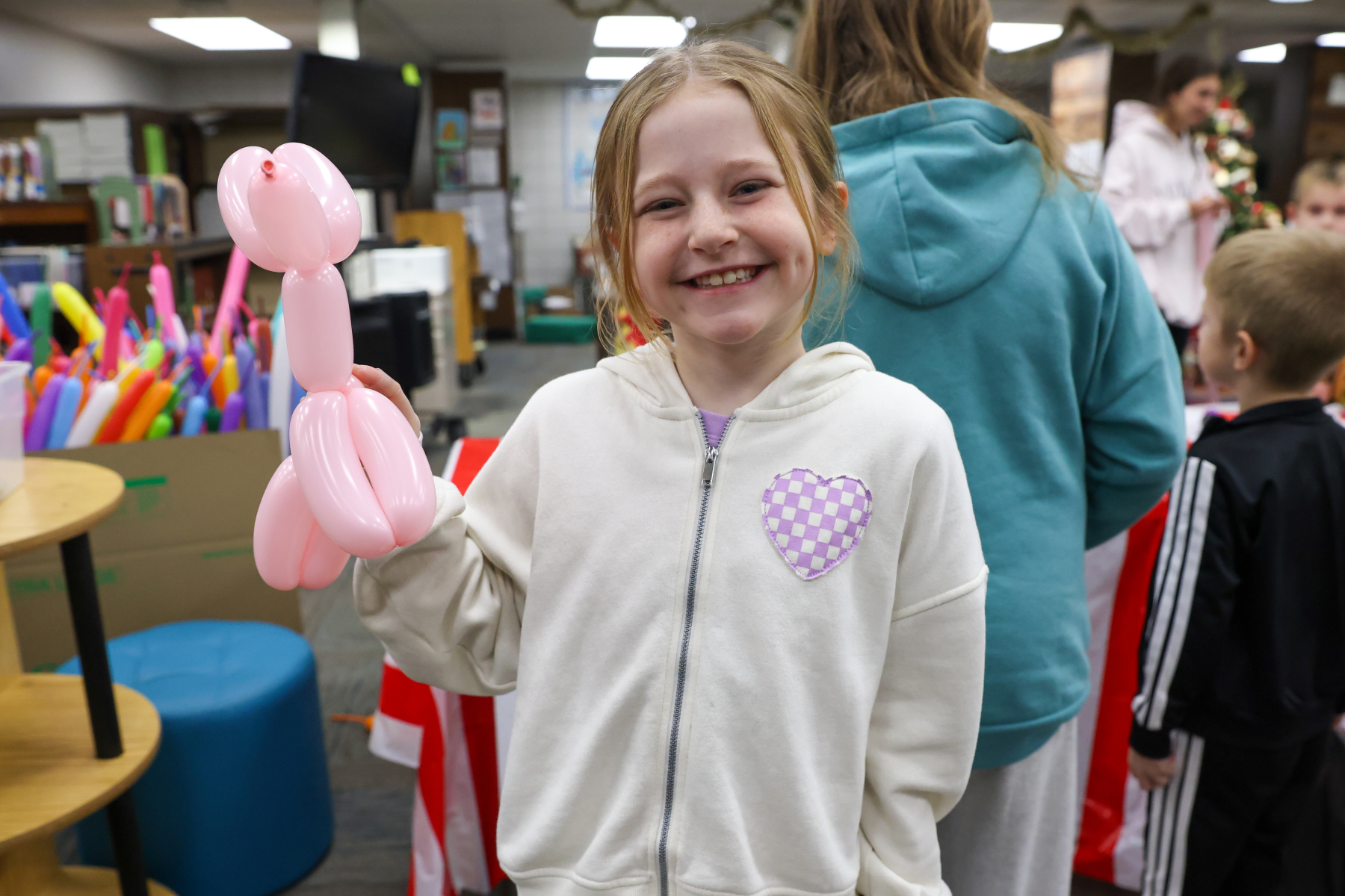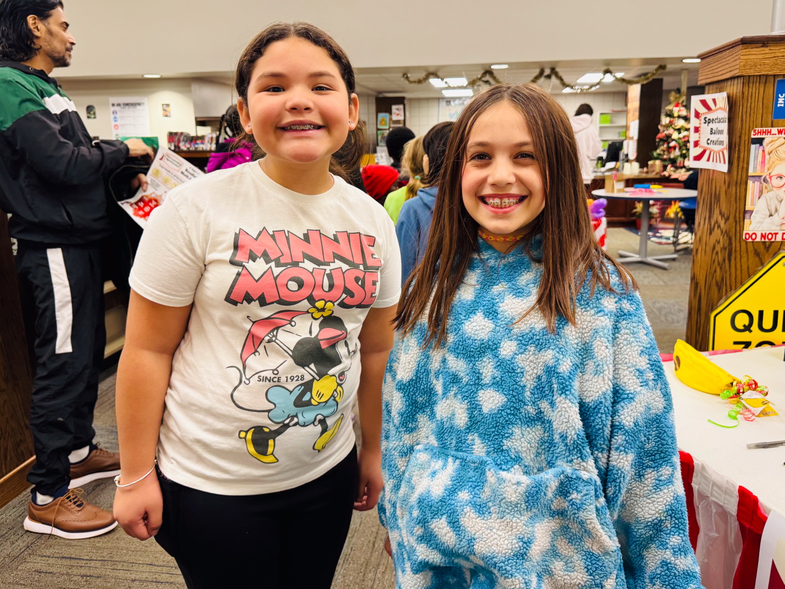 In the Library, students enjoyed balloon creations and entered a free game giveaway. The Cafeteria offered a snack station and face painting, while the Engagement Lab featured a Book Walk that kept students moving and reading. In the hallway outside the cafeteria, families stopped by the Center Stage Snapshots photo booth for a fun keepsake picture.