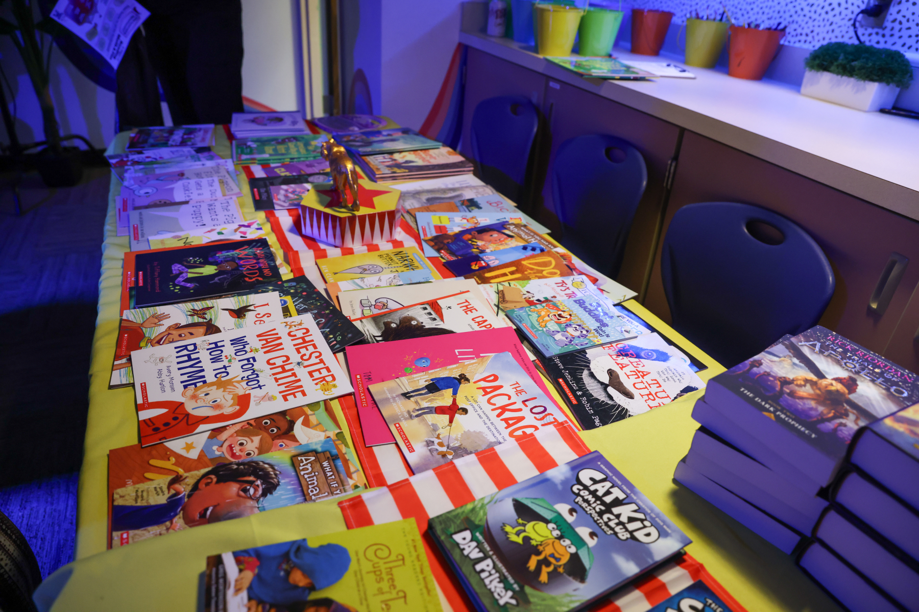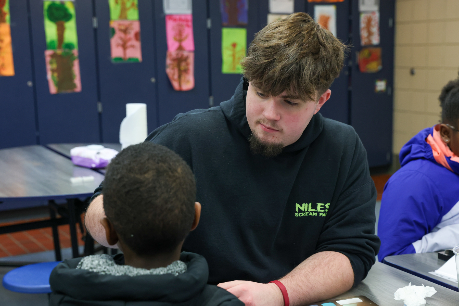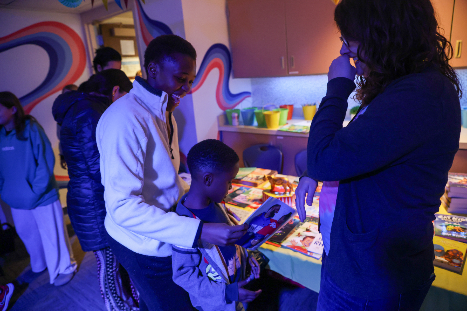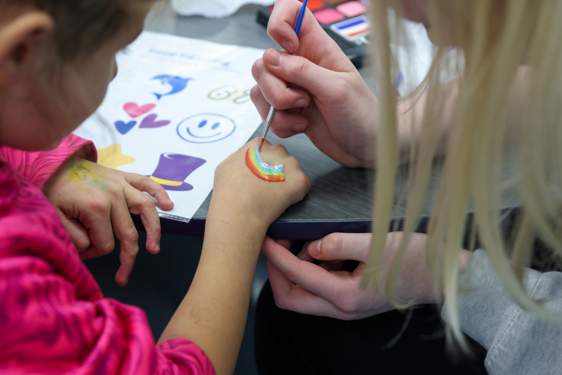 In the Library, students enjoyed balloon creations and entered a free game giveaway. The Cafeteria offered a snack station and face painting, while the Engagement Lab featured a Book Walk that kept students moving and reading. In the hallway outside the cafeteria, families stopped by the Center Stage Snapshots photo booth for a fun keepsake picture.